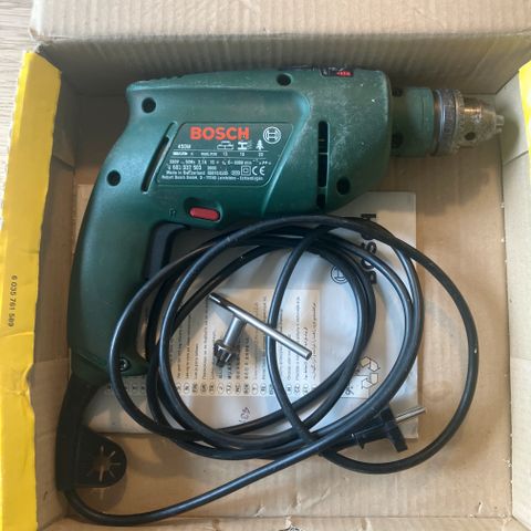 Bosch PSB 400 RE slagboremaskine i grøn. Leveres med original æske som vist på billedet.