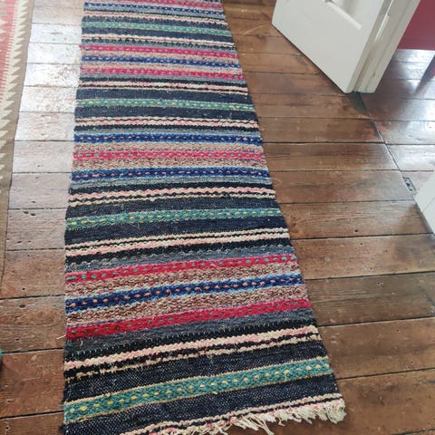 Dejligt hjemmevævet tæppe i meget fin stand.