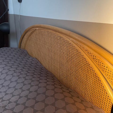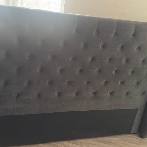 Få et par boks madrasser med ben til at ligne en ‘rigtig dobbeltseng ‘ ved at montere sengegavlen på væggen