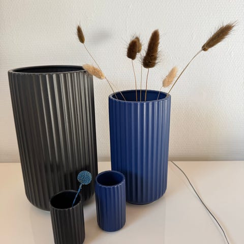 Lyngby vase med riflet overflade i sort. 15 cm i højden