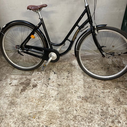 Fin stabil cykel med, lås, skærme, lys og 7 virkende gear. Kurven kan nemt afmonteres bruges bare til små indkøb pt. Cyklen har et lille bagage/taske sted foran hvis kurven fjernes !