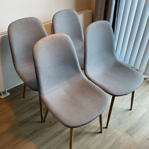 Sælger 4 stk. JONSTRUP spisebordsstole fra JYSK i gråt stof og natur egefarvede ben.