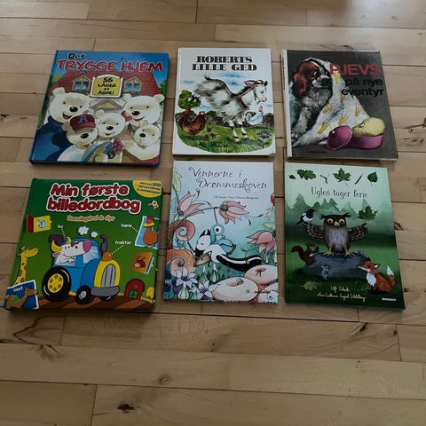 Blandet lot børnebøger med både billedbøger, papbøger og små højtlæsningsbøger. Motiverne omfatter blandt andet kendte figurer fra tegnefilm og tv-serier samt klassiske børnefortællinger. Forskellige formater og størrelser, egnet til højtlæsning og selvlæsning for mindre børn. Flere bøger med farverige illustrationer og hårde sider, som passer til de yngste læsere.