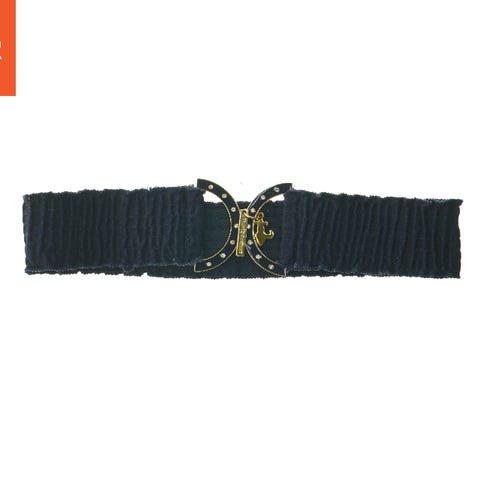Friis Company bælte til kvinde. Bæltet har beige rem med mønster og inderside i læderlook. Spændet er ovalt i guldfarve med dekorativt bogstavmotiv og små sten. På remmen sidder en lille ring med vedhæng i guldfarvet metal. Velegnet til brug i bukser eller som taljebælte afhængigt af livvidde og længde på bæltet.