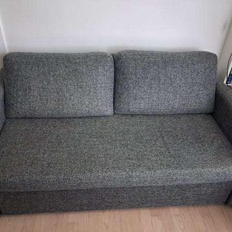 Sovesofaen mørkegrå sælges -perfekt til gæster. Sofaen kan omdannes til en dobbeltseng og den har kun været brugt til gæster.
