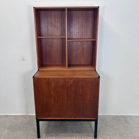 hans Hove og Palle Pedersen bogreol i fineret teak med justerbare hylder og hjørner i ibenholt