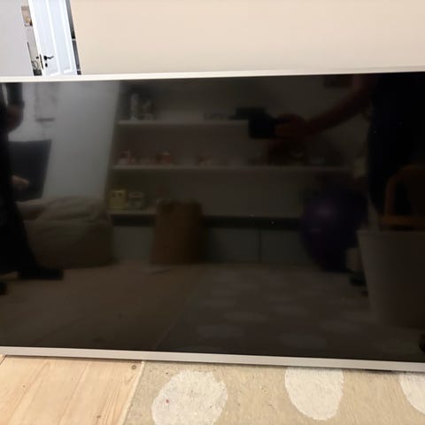 Philips tv. Fladskærms-tv på fod, velegnet til placering på tv-møbel. Skærmen har fladt panel og indbygget højttaler i bunden. Chromecast medfølger. Jeg mener at det er 42 tommer.