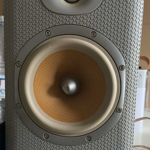 Med brugsspor og vægophæng monteret bagpå. Frontstof og fronter rigtig pæne. Spiller perfekt og med rigtig b&w lyd fra 1990’erne. Kan høres ved afhentning eller sendes med gls for 64 kr.