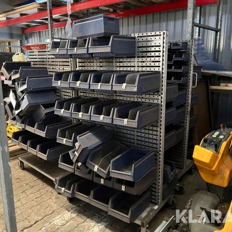 Standerne er monteret på hjul, så de er mobile og nemme at flytte. De viste modeller er i sort og hvid metal med kvadratiske huller til ophængskroge og tilbehør. Egnet til butiksindretning og præsentation af mindre varer, tilbehør eller værktøj, hvor der er behov for fleksibel ophængning og god oversigt.