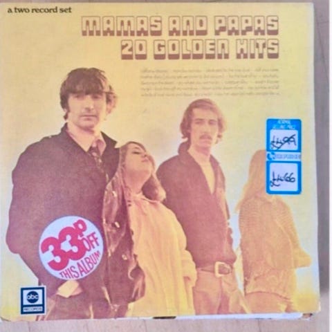 Andre samleobjekter, Vinyl Plade, Mamas and Papas 20 golden hits