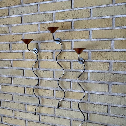 IKEA lysestager i kobber og metal. Sættet består af bordmodeller og gulvmodeller med samme designudtryk. Lysestagerne har en rund fod og drejet metalstamme med kobberfarvet top, der er egnet til fyrfadslys eller små lys. Velegnet som dekoration i stue, entré eller andre opholdsrum, hvor der ønskes et ensartet udtryk mellem bord- og gulvlysestager.