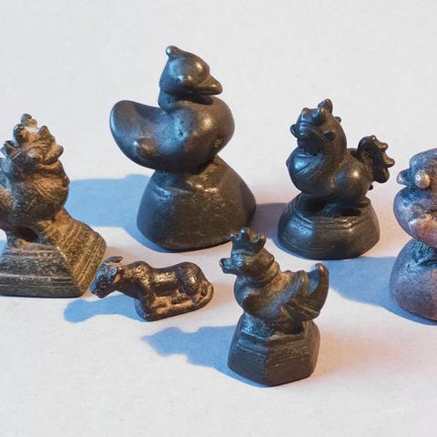 ofte betegnes denne slags bronze-vægtlodder som opiumslodder - lidt gyserromantisk, for de blev brugt tel meget andet handlet i små mængder,: krydderier, ædelstene mm. De blev anvendt i "den gyldne trekant" i grænseområdet i nordlige Siam (Thailand), Burma (Myanmar) og sydl. Kina. -Her er det en slags and, andre med elefanter (måske mest Siam) eller løver (mest de kinesiske) lodderne er forsynet med. Alder 200+ bragt til Danmark af dansk skipper før ca 1860