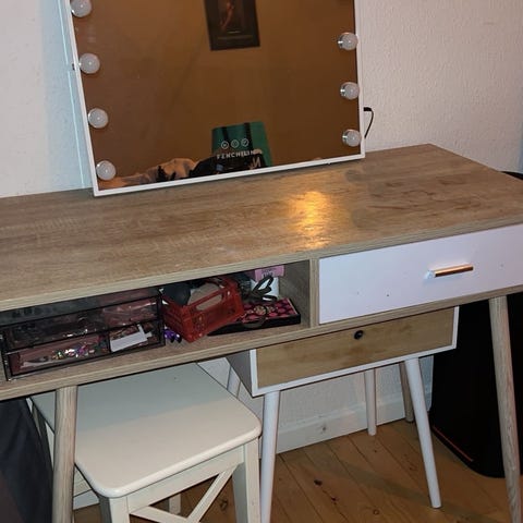 Vintage makeup bord i jern med tilhørende stol