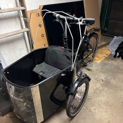 Har styring som en nihola ladcykel som er klart bedre end dem hvor hele ladet og styret drejer som et