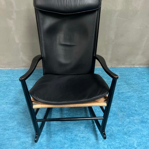 Rigtig flot Wegner gyngestol model GE673 i massiv eg og flot cognac læder, helt som nyt. Kun et par år gammel fra ca 2020.