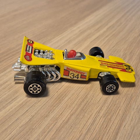 Til salg er en original vintage Matchbox Lesney Speed Kings Shovel Nose Fire Chief (modelnummer K-32/40). Denne ikoniske støbte bil blev først produceret i 1971 i England