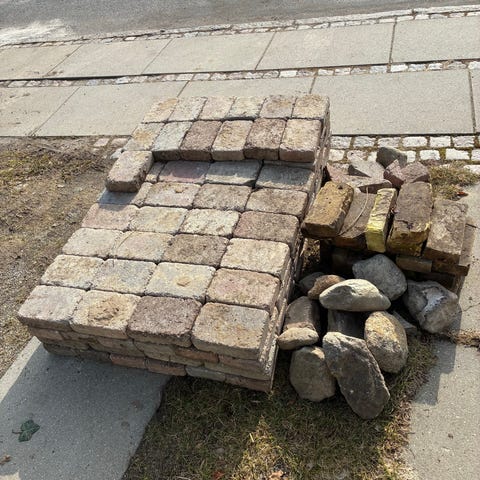Herregårds fliser og kantsten til gratis afhentning.gratis der er mange så tag bare