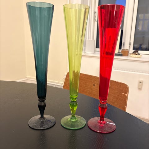 En karaffel, 5 høje glas og 3 mindre glas. Sendes ikke