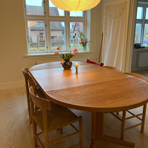 Brugsspor på bordpladen, massiv træ, så kan pudses ned.