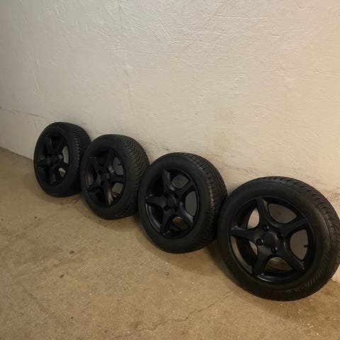 Der er monteret 4 nye ventiler plus lige blevet afbalanceret og nyvasket, så de er klar til montering på bilen.