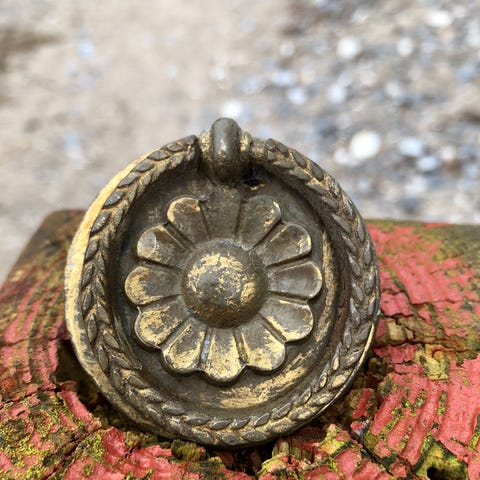 Flotte og klassiske gardinomtag / håndklædeholdere i messing sælges.