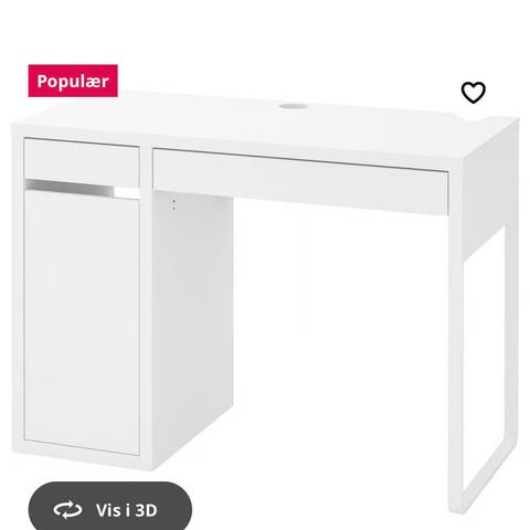 IKEA Micke skrivebord i sortmalet træ, med skuffer og et skab i siden.