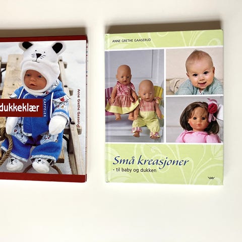 Nå kan du slå to fluer i ett smekk – med babyklær og dukkeklær i én og samme bok! Her vrimler det av inspirerende ideer; nyttige er de også. Alle modellene er enkle å få til, med detaljerte og instruktive forklaringer om fremgangsmåte. Fargeskalaen er holdt i pastell, men det er kun forslag. Du velger selvfølgelig selv de fargene du liker best, både på babyklær og dukkeklær. Og trenger du gode ideer til å lage gratulasjonskort til dåpen, eller noen gaveideer til den lille – kanskje en liten myk Kalle Kanin? – finner du også det i denne innholdsrike og flotte boken.