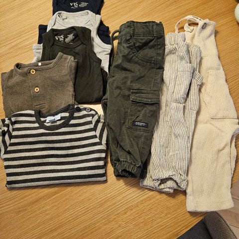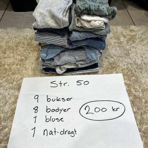 tøjpakke til dreng i str. fra 52-74 i multifarvede nuancer. Pakken består af forskellige stykker tøj, som på billederne kan ses at omfatte både overdele og underdele i flere farver og mønstre. Tøjet er egnet til en dreng i størrelse fra 52-74 og kan bruges til hverdag og skiftetøj. Farver og typer af tøj varierer, hvilket giver mulighed for flere kombinationer i garderoben.