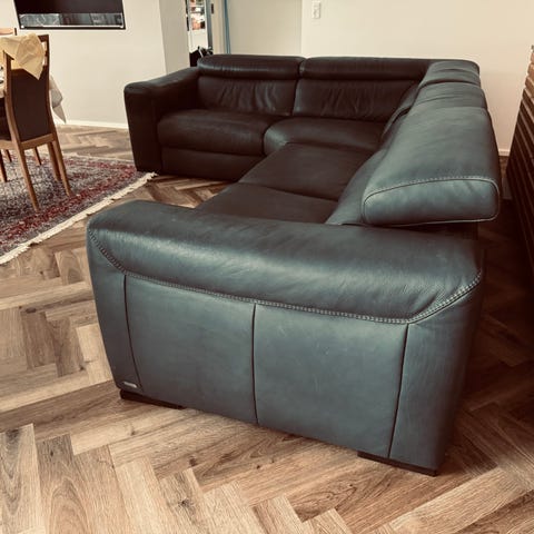 Sofaen er betrukket med blodt lader i dessin Dream, som er en kraftig semianilinlader med meget struktur i overfladen. Læderet har fäet en let overfladefinish, som beskytter laderet og dermed kræver det kun et minimum vedligeholdelse.