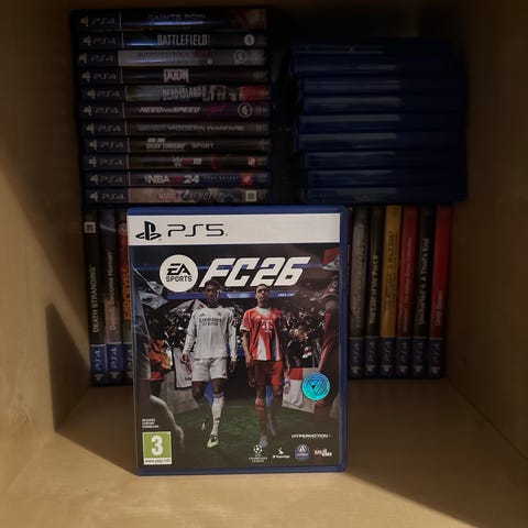 EA Sports FC 25 PlayStation 5 spil. Fodboldspil til PS5 med aldersmærkning PEGI 3. Fysisk udgave i plastcover, egnet til brug på PlayStation 5 konsol.