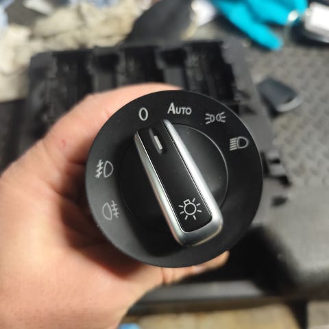 Sælger denne originale volkswagen lyskontakt fra min VW Up. Det er modellen med 14-pin. Passer dog også til modeller som VW E-up, SEAT Mii, Škoda Citigo, Audi osv. Rund kontakt til betjening af bilens lysfunktioner, herunder nærlys, positionslys, tågelygter