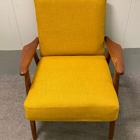 2 Lækker retro lænestol i massiv taektræ. Ny betrukket med originaler hynder. Fremstilet af Dansk møbelproducent i ca. 1960’erne. Fremstår i super stand. Evt kan lev aftales. Pris er pr stol.