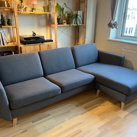 4 pers. sofa med stor chaiselounge inkl. puf
