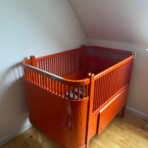 Original Juno-seng med nyere madras. Sengen kan bruges men trænger til en kærlig hånd. Madras med forlængerstykke medfølger.