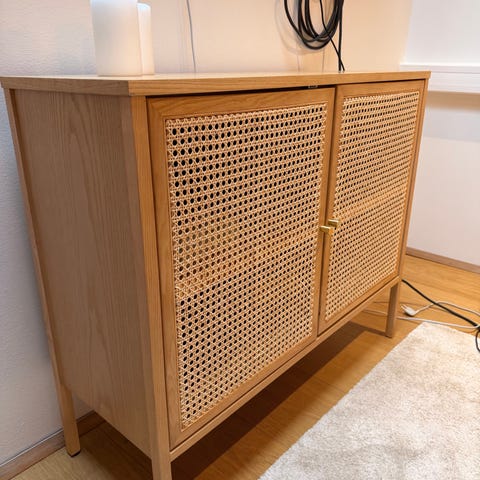 Sort metal. https://jysk.dk/spisestue/skaenke/skaenk-virum-3-laager-sort. Skal bæres ned fra 4. Sal. Leverer ikke.