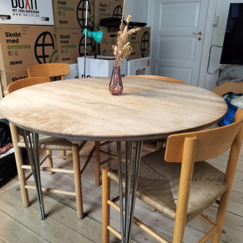 Bordet fremstår pænt og velholdt uden hakker eller skrammer. Det er fra røg- og dyrefrit hjem.