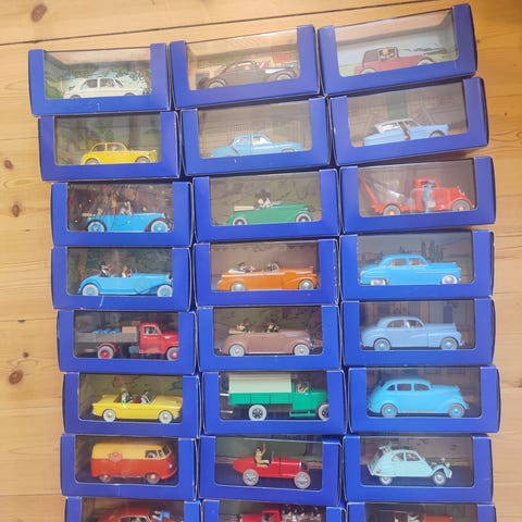 Tintin biler, 1 stk. er i æske og med certifikat, 8 stk. er UDEN æske og certifikat.