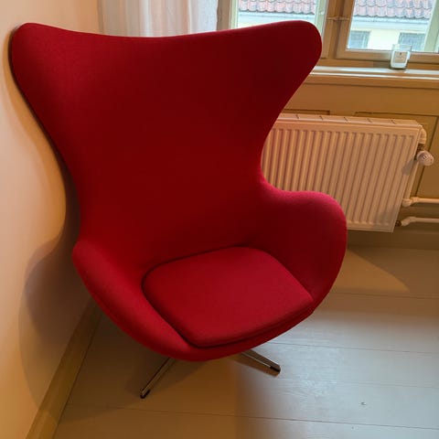 Fritz hansen ægget fra 1996. Rigtig pæn stol og fed farve som passer til alle hjem. Farven er rød/brun som er en speciel farve og stadig i original tilstand siden 1996.