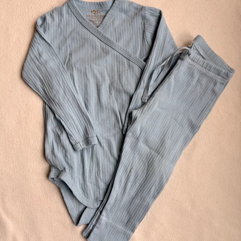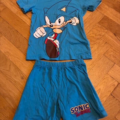 Copenhagen Colors sæt i størrelse 110. Med en kortærmet polo T-shirt og et par shorts begge med fine broderede surfende gravhunde. 100% bomuld. Vores søn har hevet snoren ud i shortsene, men da man kan tilpasse dem i livet, har det ikke betydet noget for os. Kun vasket i neutral vaskemiddel.