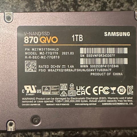2x Samsung 870 EVO SSD med kapacitet på 500GB. 2,5"