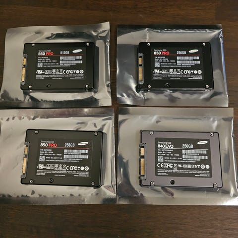 2x Samsung 850 EVO SSD med kapacitet på 500GB. 2,5"
