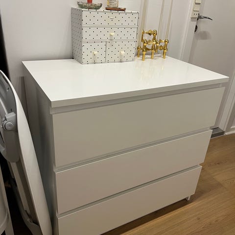 Hvid Malm kommode fra IKEA kan afhentes på Amagerbro i Kbh. Fin stand og sælges fordi vi har købt en større