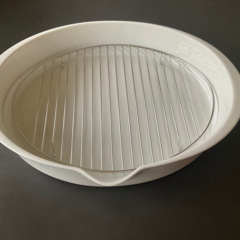 Copco rektangulært ovnfad i keramik/stenmateriale. Fadet er udvendigt gult og indvendigt hvidt med integrerede håndtag i begge sider. Den indvendige længde er ca. 35 cm, som vist på billedet med målebånd. Velegnet til tilberedning og servering af ovnretter og andre varme retter. Designet af Copco, som angivet på bunden af fadet.