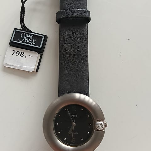 Inex armbåndsur til kvinde med rund sort urskive og datoangivelse. Uret har metalrem med foldelås. Klassisk analog visning med time-, minut- og sekundviser. Velegnet som hverdagsur eller til mere formelle anledninger. Omkreds er 18 cm, når remmen er lukket. Der skal nyt battei i.