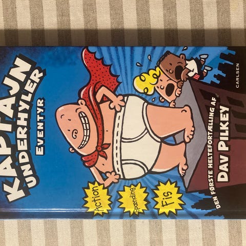 Dav Pilkey Kaptajn Underhyler bog. Dansk hardback-udgave af børnebogsserien om superhelten Kaptajn Underhyler, udgivet af Carlsen. Velegnet til børn, der kan lide humoristiske og illustrerede bøger med tegneseriestil.