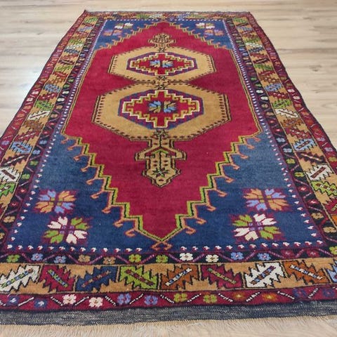 Især de ensartede farver, særligt de røde og blå farver, kendetegner tæppet.