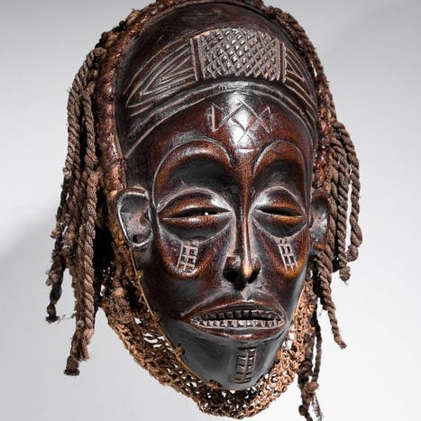 Dette Munyangi-afrikanske masker med sit spidse ansigt krönt af horn er ingen undtagelse.
