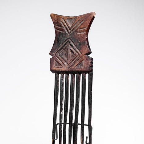 Et Akan-kam fra Ghana, dateret til midten af det 20. århundrede, fra en privat samling, 41 cm høj, 1 cm bred, 1 cm dyb, vejer 1 g og er i fremragende stand. Klik på den blå "gå til varen" knap, for at købe eller byde på denne vare. Den samlede pris vil blive vist inden du afgiver dit bud.