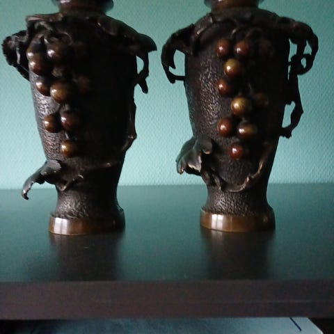 Japansk bronzevase i balusterform med zoomorfe håndtag, dateret til sen Edo- til tidlig Meiji-periode (ca. 1800–1870), 24,5 cm høj, 12 cm bred og 12 cm dyb, patina, ikke underskrevet, provenance privatsamling, Original-tildeling, ikke leveret med stand. Klik på den blå "gå til varen" knap, for at købe eller byde på denne vare. Den samlede pris vil blive vist inden du afgiver dit bud.