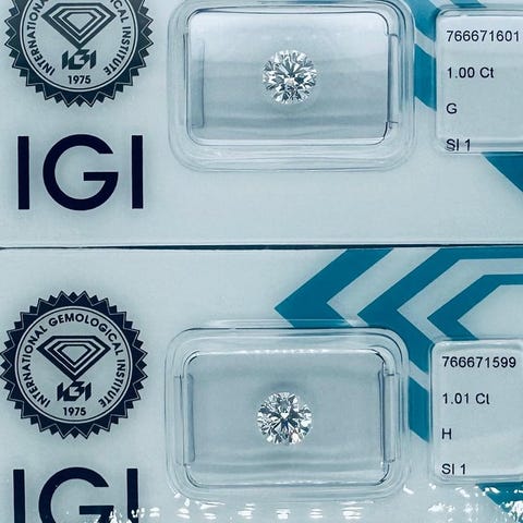 2 pcs Diamant (Natur) - 4.03 ct - Rund - I, J - SI2, SI3 - Gemewizard Gemolog...